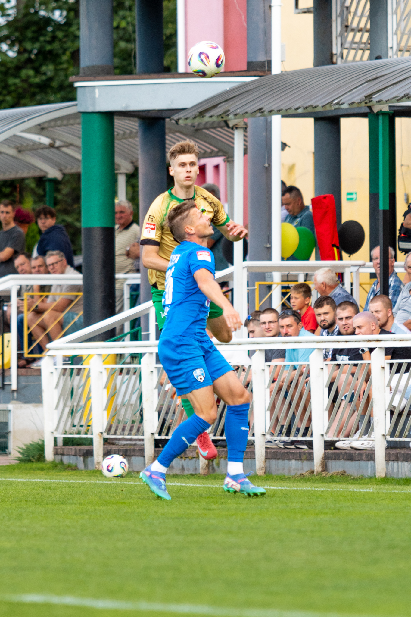 Nasi zawodnicy nie załamali się jednak szybkim prowadzeniem przeciwnika i z minuty na minutę zaczęli coraz mocniej naciskać. Opłaciło się to tuż przed przerwą – w 45. minucie meczu Dawid Hanzel zdobył gola kontaktowego. Po precyzyjnym dośrodkowaniu Dawida Weisa, nasz napastnik pięknym strzałem głową nie dał szans bramkarzowi Goczałkowic. Na przerwę schodziliśmy więc z wynikiem 1:2, a kibice uwierzyli, że odwrócenie losów meczu jest możliwe.