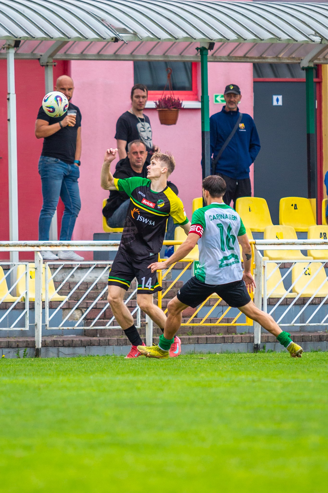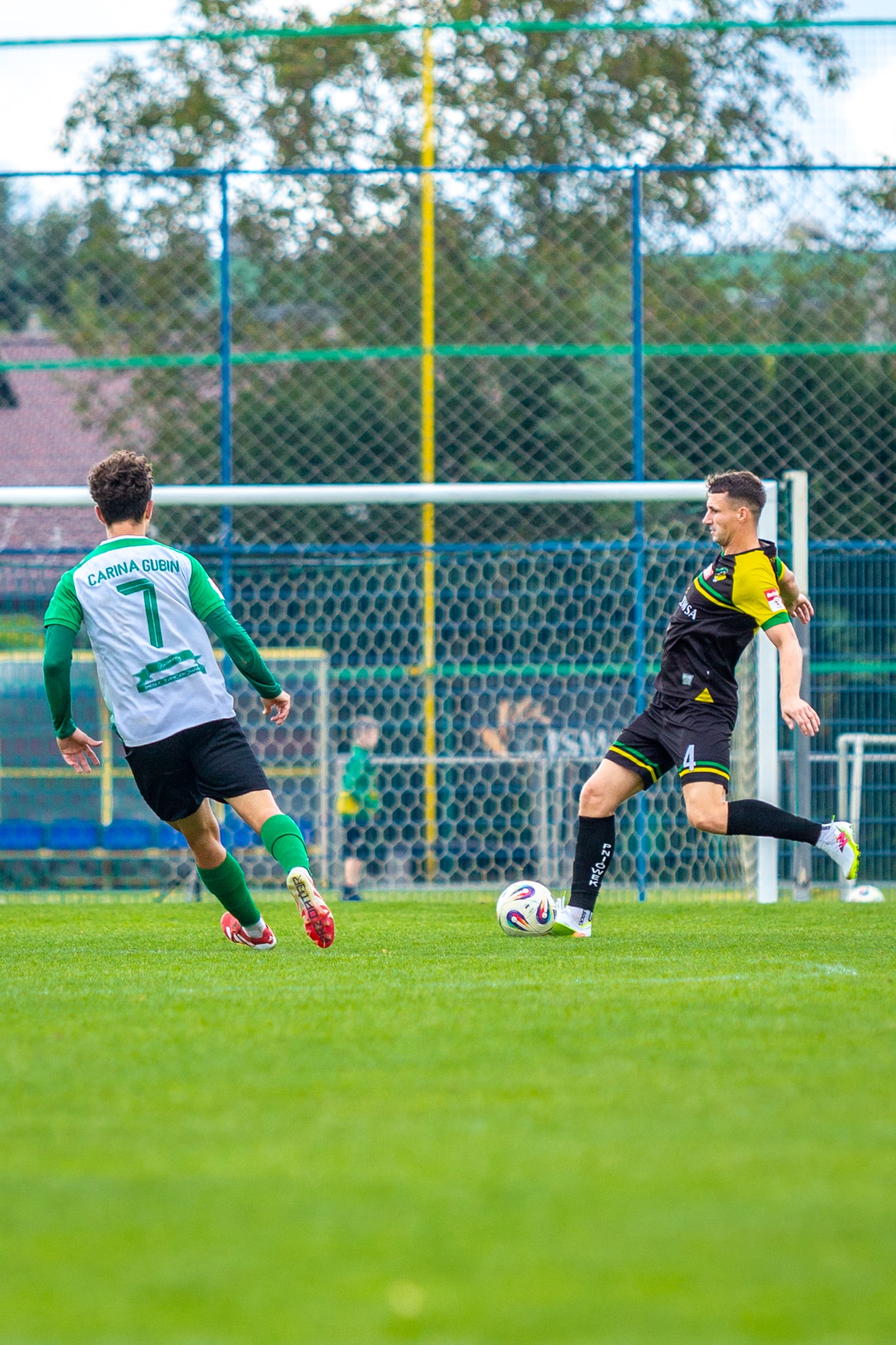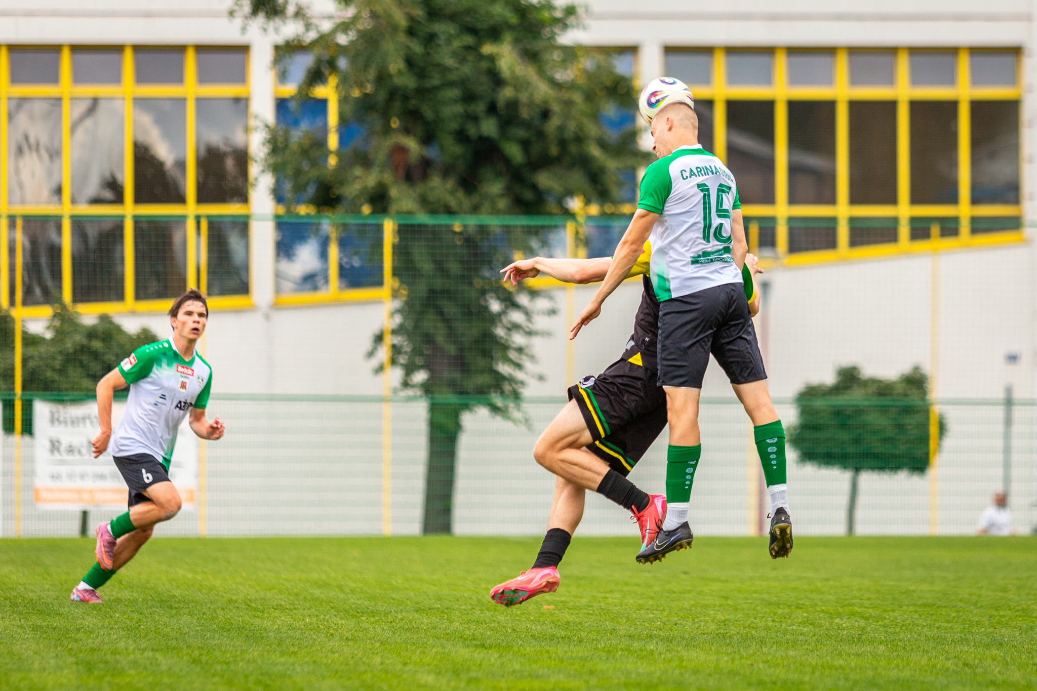 Najpierw bliski szczęścia był Dawid Weis, który z rzutu wolnego posłał precyzyjne uderzenie nad murem w samo „okienko”, ale golkiper gości popisał się kapitalną interwencją. Chwilę później arbiter wskazał na jedenasty metr – do piłki podszedł Dawid Hanzel, jednak i tym razem bramkarz Cariny wykazał się doskonałym refleksem, broniąc rzut karny.