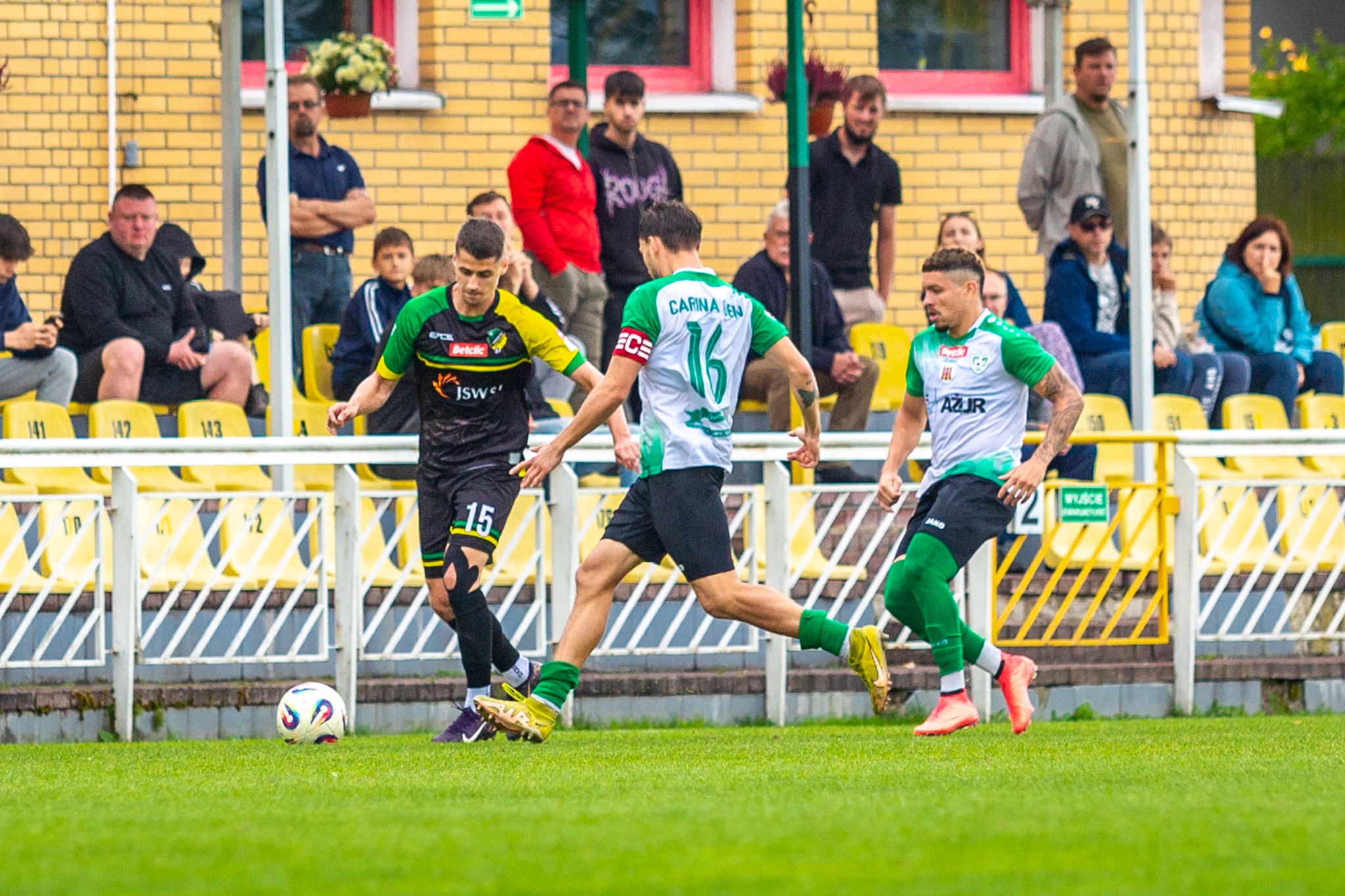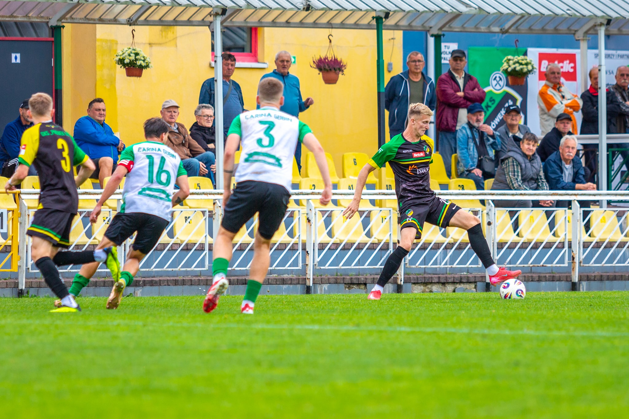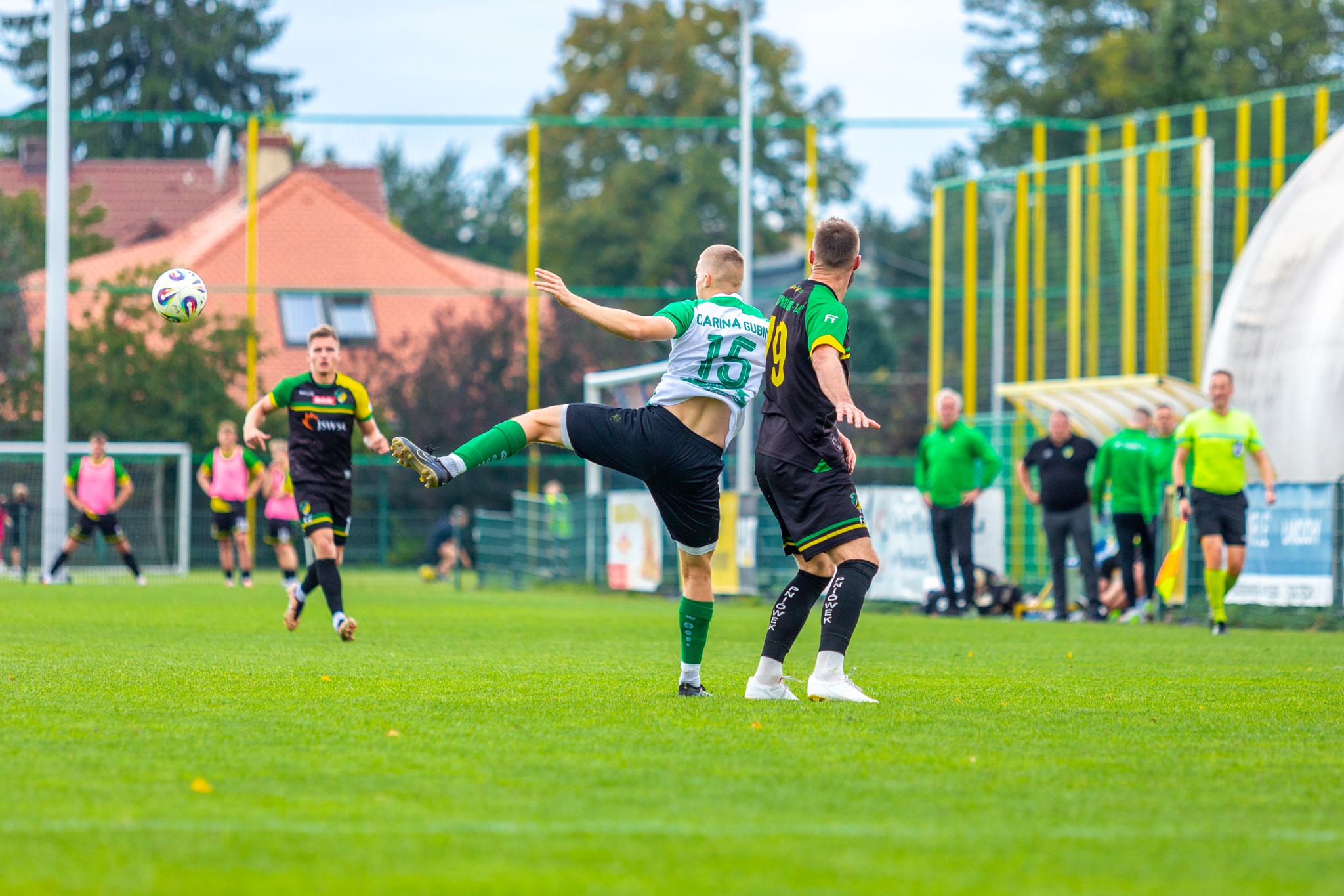 Najpierw bliski szczęścia był Dawid Weis, który z rzutu wolnego posłał precyzyjne uderzenie nad murem w samo „okienko”, ale golkiper gości popisał się kapitalną interwencją. Chwilę później arbiter wskazał na jedenasty metr – do piłki podszedł Dawid Hanzel, jednak i tym razem bramkarz Cariny wykazał się doskonałym refleksem, broniąc rzut karny.