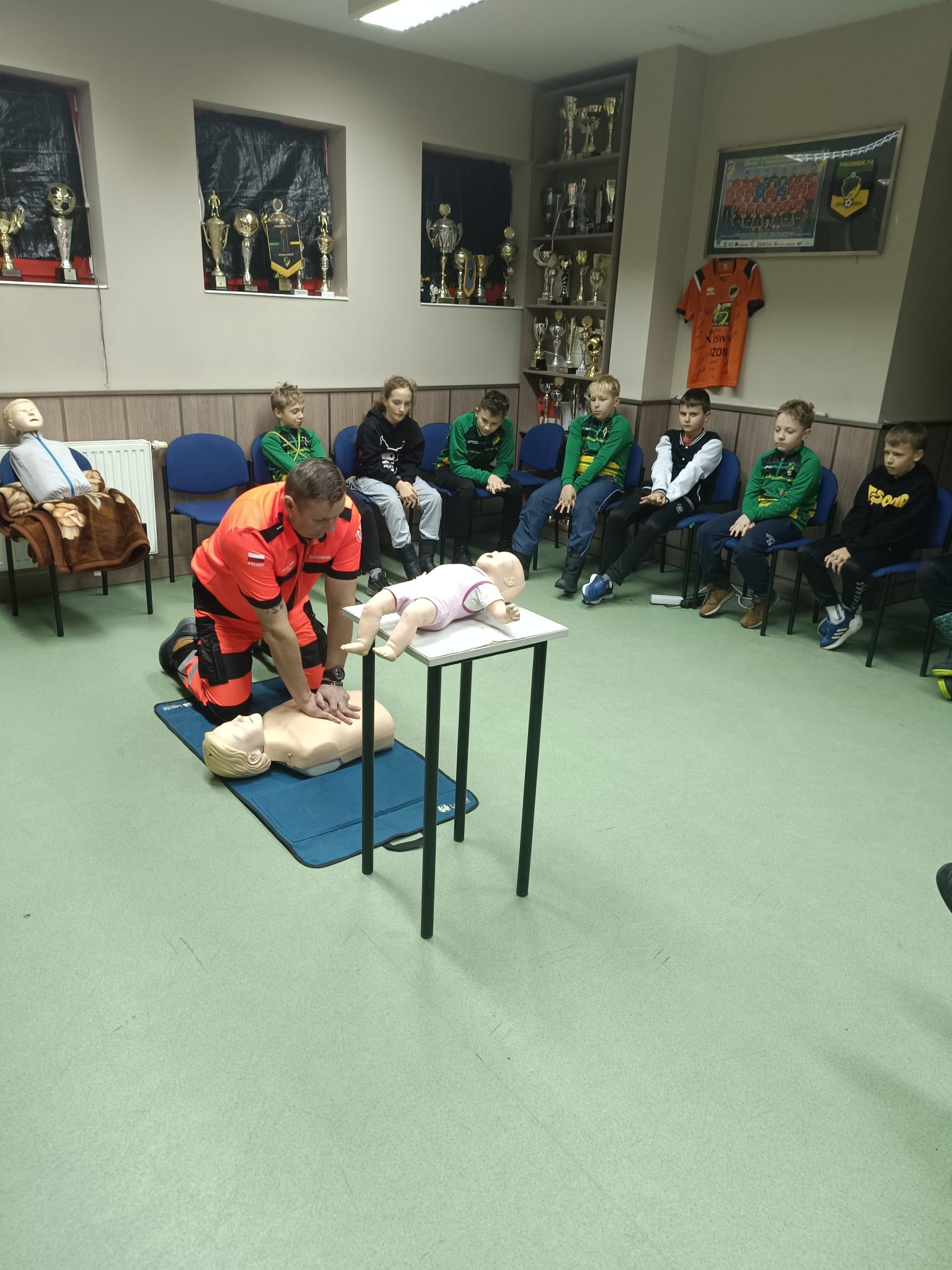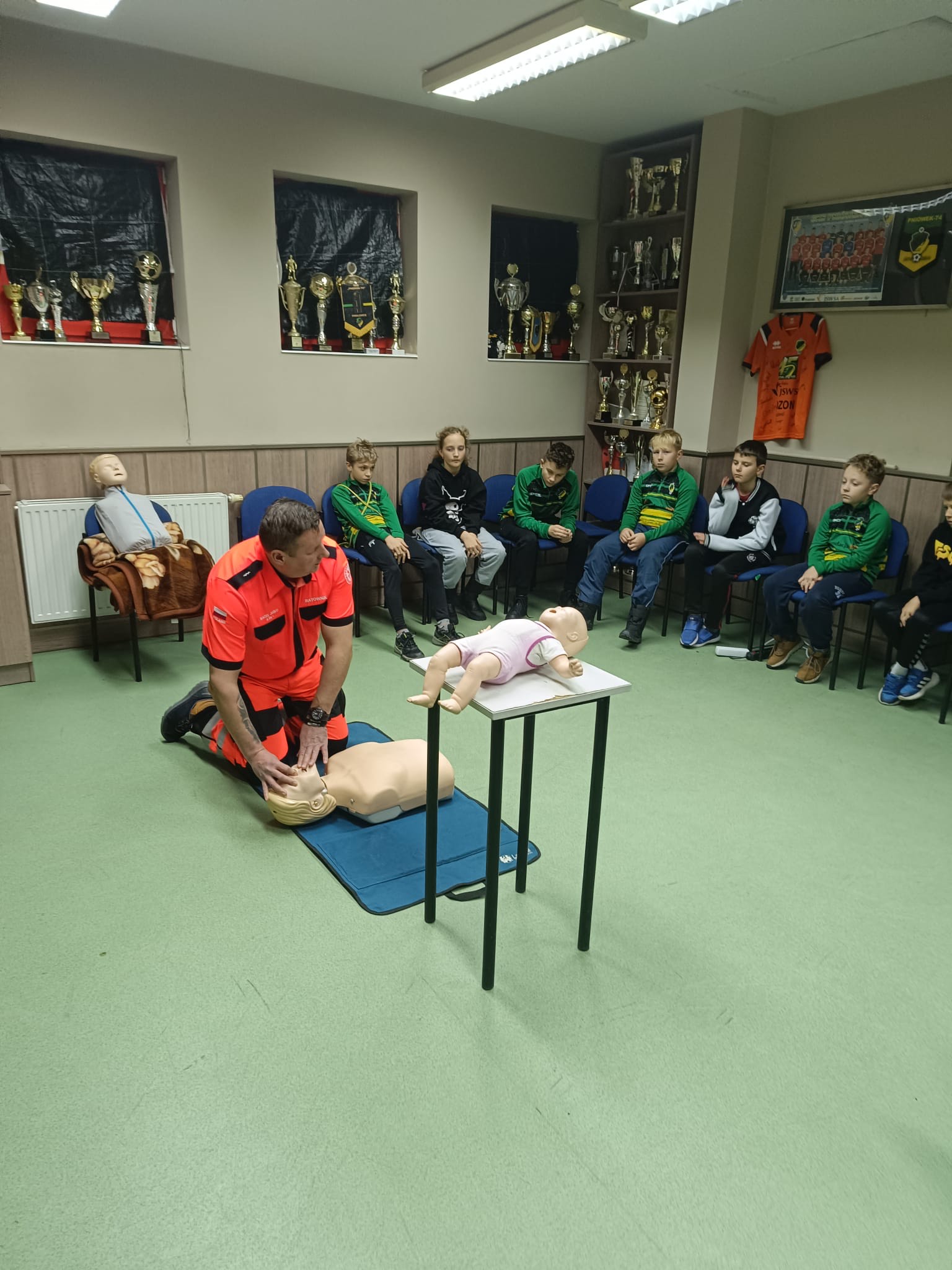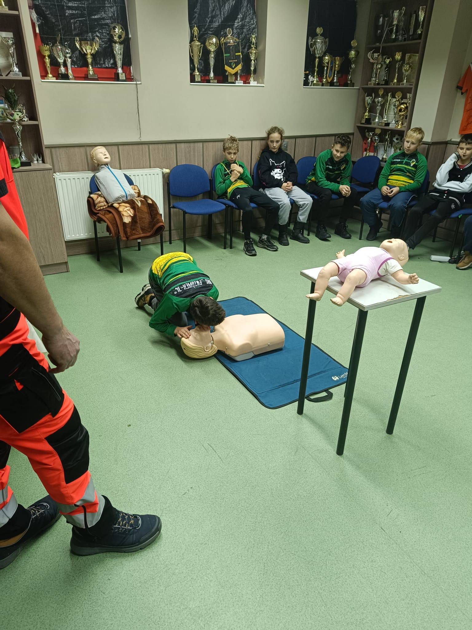 2 grudnia w naszym budynku klubowym odbyło się kolejne szkolenie z zakresu bezpieczeństwa. Tym razem zajęcia poprowadził ratownik medyczny, który w praktyczny sposób pokazał młodym zawodnikom, jak reagować w sytuacjach zagrożenia życia. W szkoleniu uczestniczyła grupa Trampkarz C2, która z dużym zaangażowaniem brała udział w ćwiczeniach.