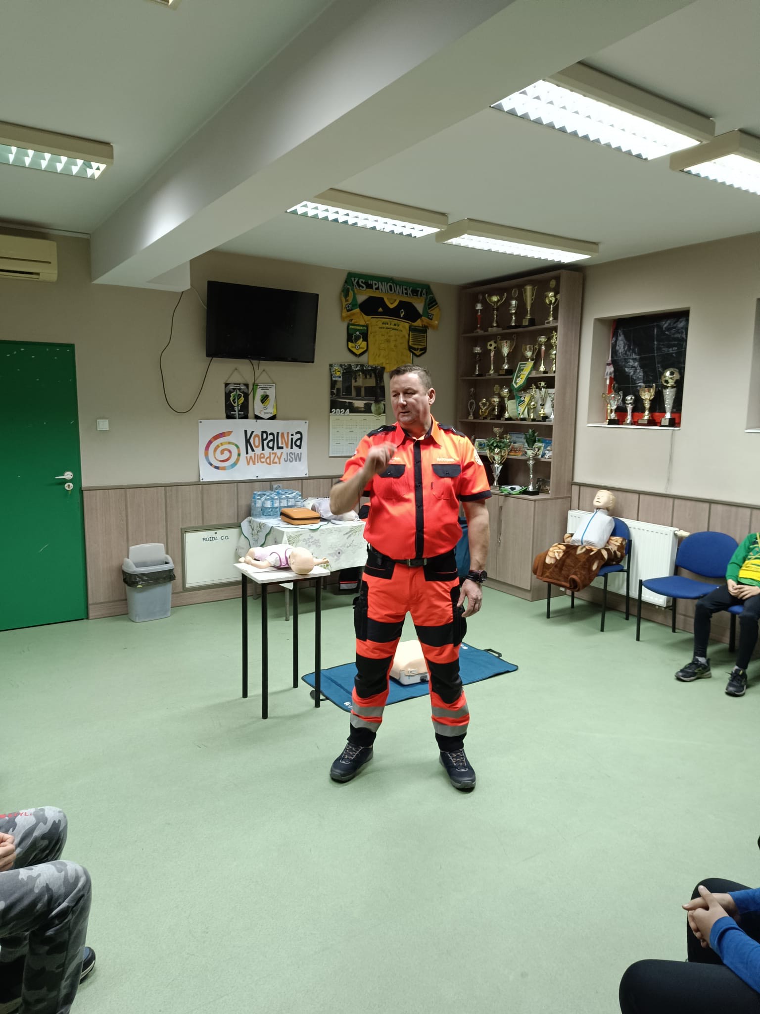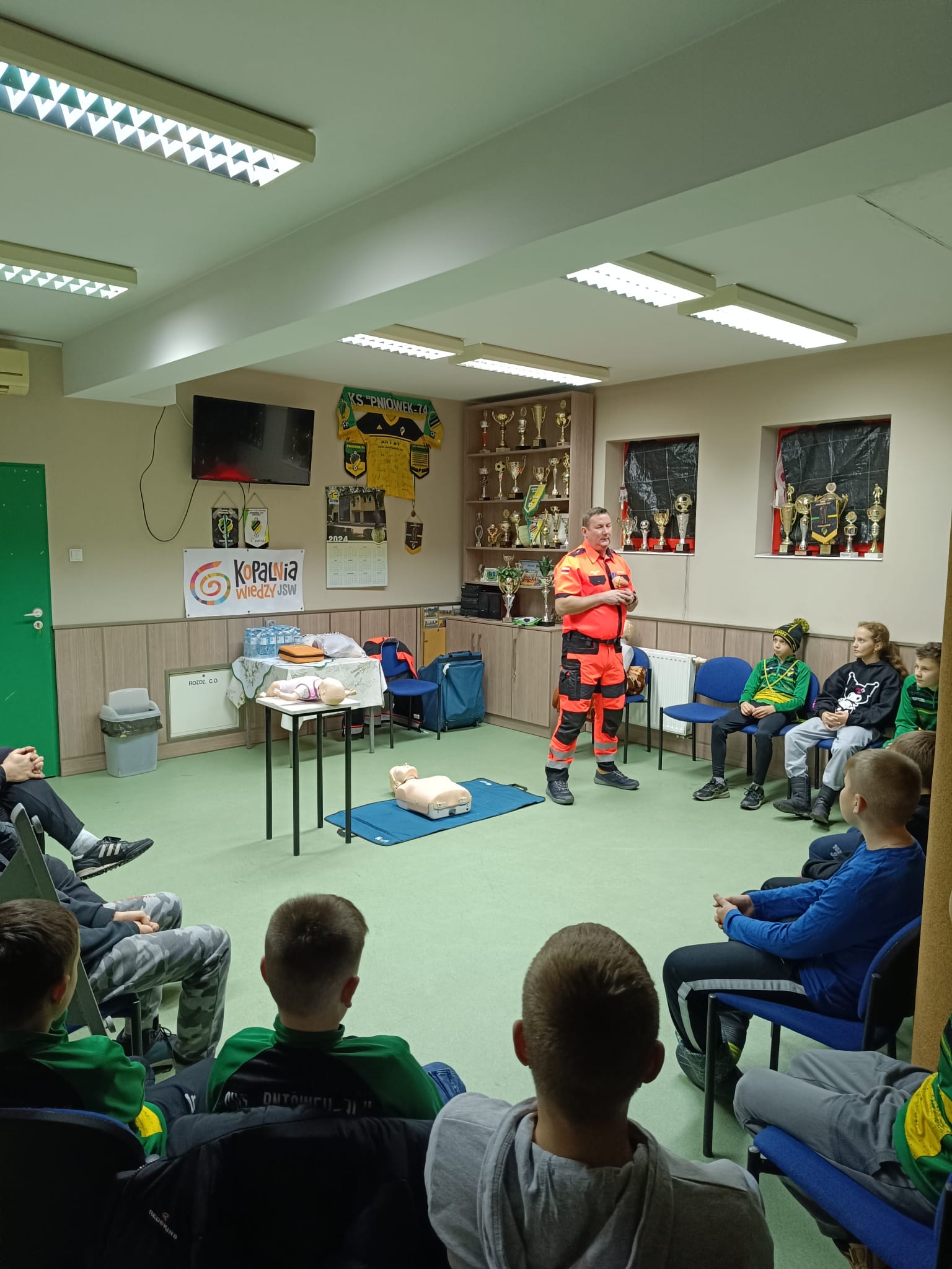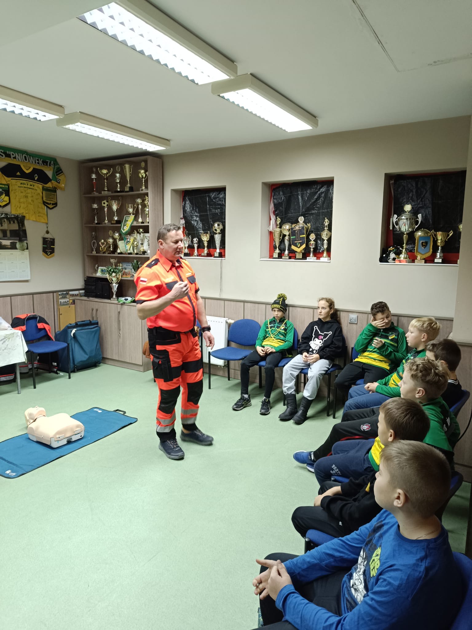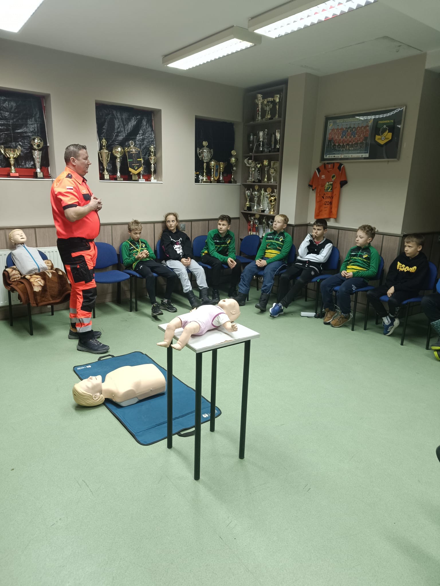 2 grudnia w naszym budynku klubowym odbyło się kolejne szkolenie z zakresu bezpieczeństwa. Tym razem zajęcia poprowadził ratownik medyczny, który w praktyczny sposób pokazał młodym zawodnikom, jak reagować w sytuacjach zagrożenia życia. W szkoleniu uczestniczyła grupa Trampkarz C2, która z dużym zaangażowaniem brała udział w ćwiczeniach.
