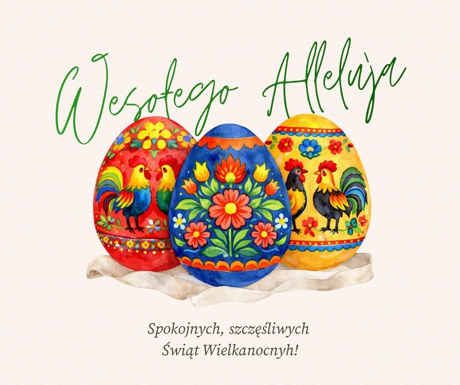 Z okazji Świąt Wielkanocnych składamy Wam najserdeczniejsze życzenia pełne ciepła, nadziei i wzajemnej życzliwości. Niech Zmartwychwstanie Jezusa Chrystusa będzie dla Was źródłem siły, wiary oraz odrodzenia – zarówno w życiu codziennym, jak i w chwilach wyzwań.
